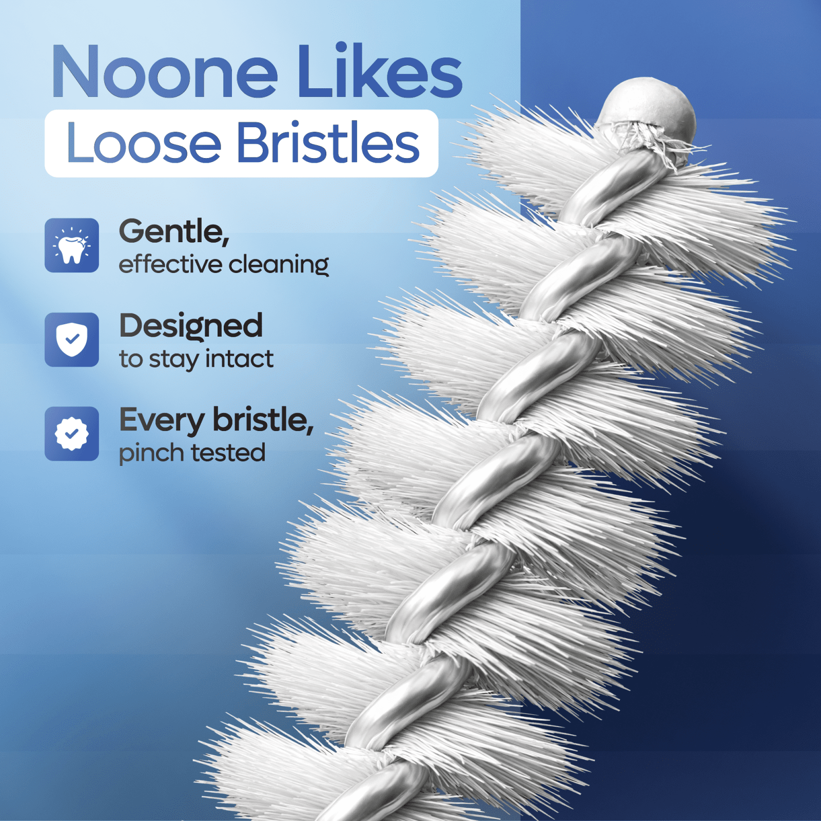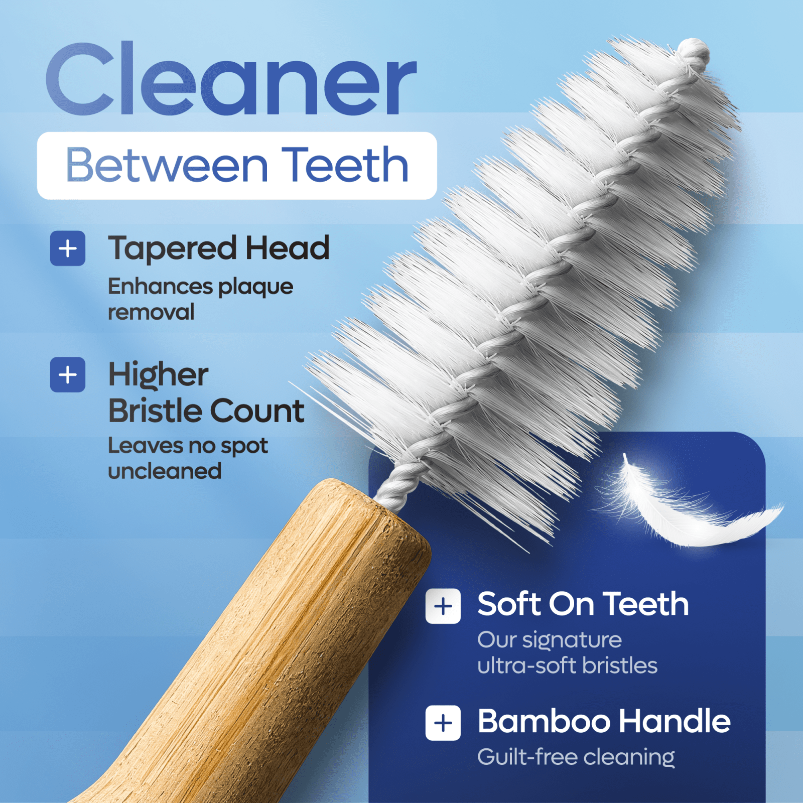 Soft, tapered bristles fit snugly between teeth to clean without damaging enamel or irritating sensitive gums.