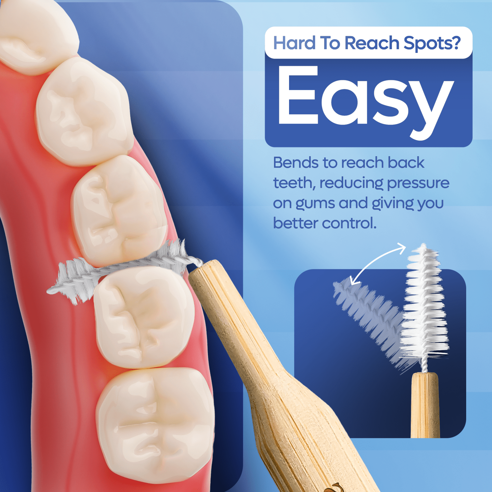 Helps prevent gingivitis and reduce bleeding by gently stimulating gums and cleaning the spaces your toothbrush misses.
